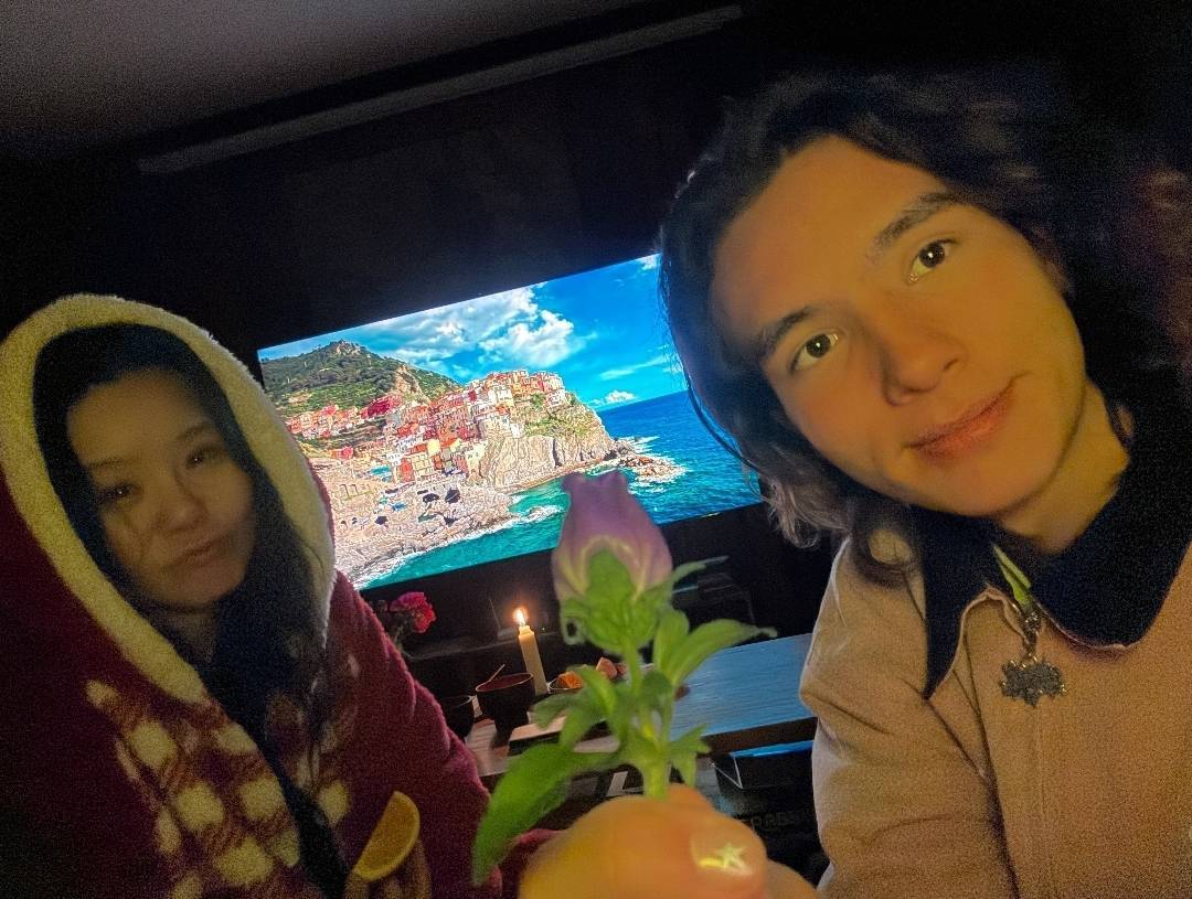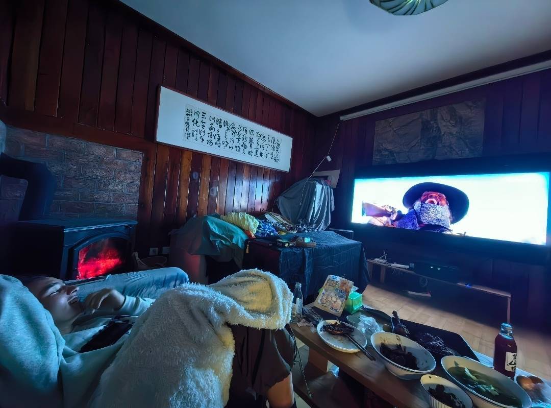 龚琳娜在云南的房子最近在重装,家里买了台新的电视机,98寸大电视,雅酷回来刚好也能一起看看电视,龚琳娜透露,他们母子俩就这样窝在沙发上,烧着火炉,连看了三晚上的电视,一起听音乐,一起聊天,很是惬意幸福。